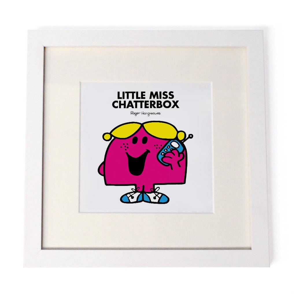 Little Miss Chatterbox White Art Print
