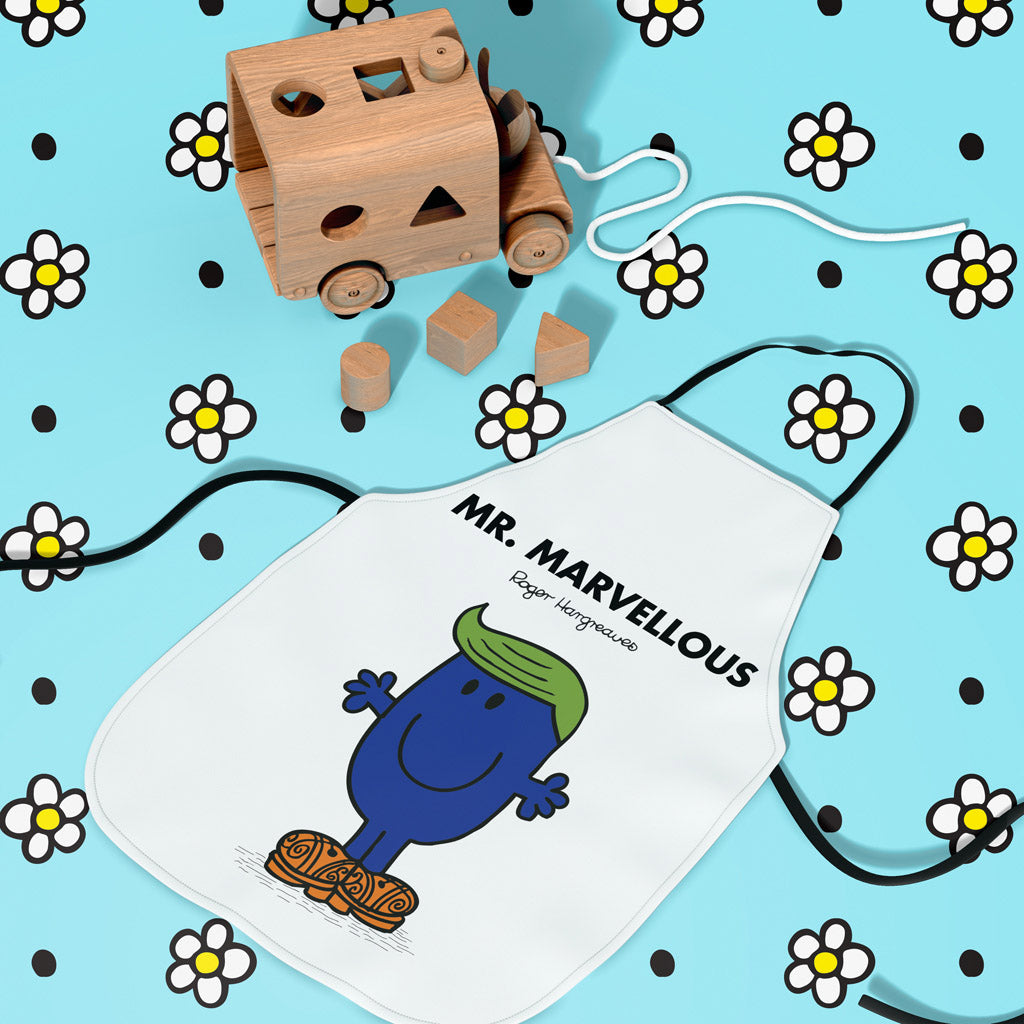 Check out our Mr. Marvellous Apron! This fun and stylish apron is made from 100% cotton and proudly printed in the UK. It's perfect for all Mr. Men Little Miss fans and collectors. Available in both kids and adults sizes.